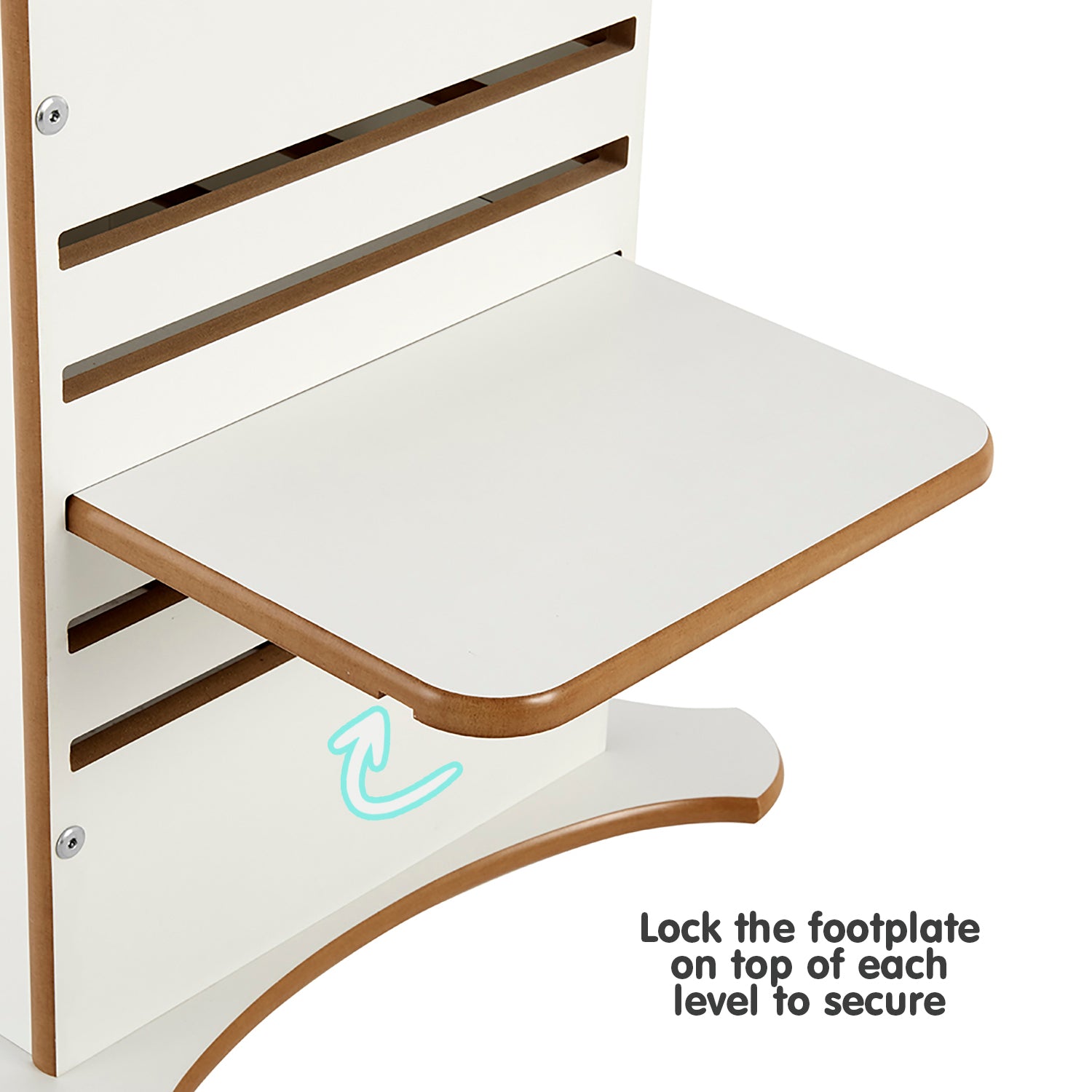 Height adjustable platform | ✔️ 5 heights with safety locking footplate so it grows with your child | ⚠️ Some fixed height or fewer options |