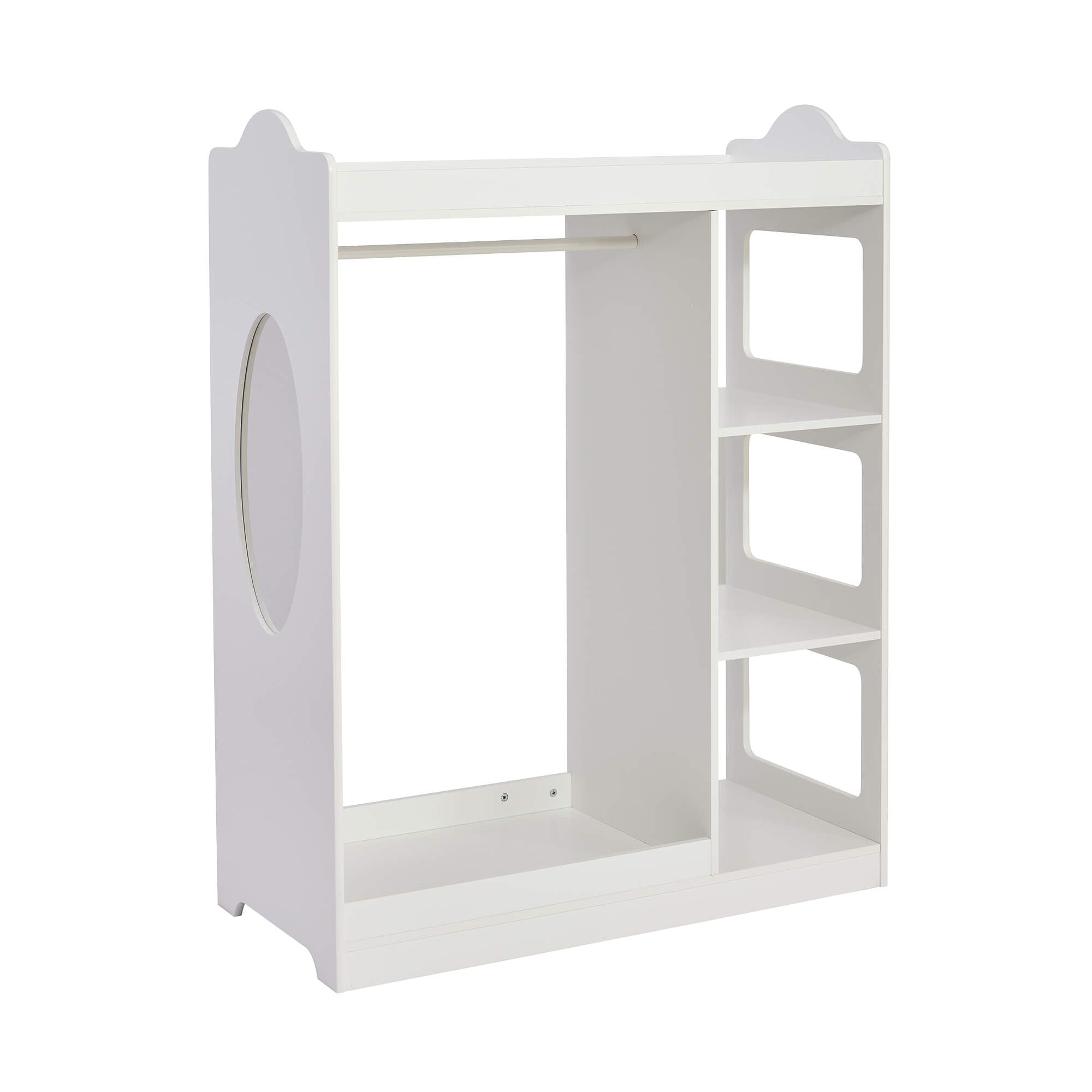 Montessori Kids Dressing Up Rail With Mirror & Storage Shelves | White