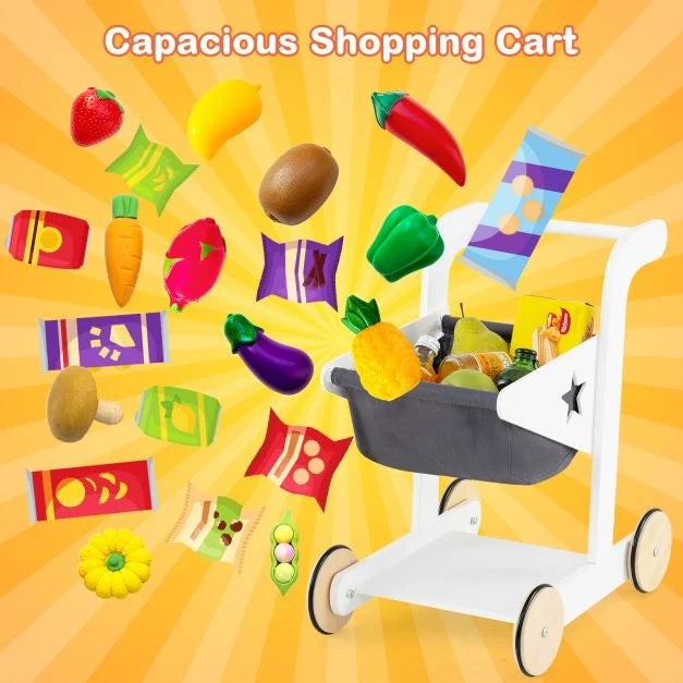 Wooden Pretend Play Grocery Store | Shopping Trolley & Cash Register | 3 Years+