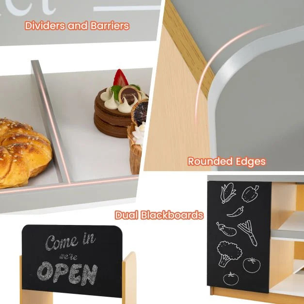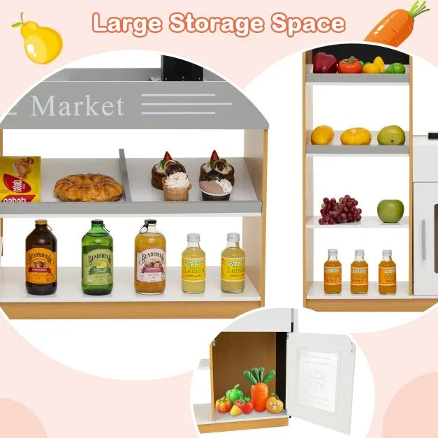 - Safe and Reliable Construction: Designed with safety in mind, this toddler grocery store set boasts a splinter-free surface and rounded edges. It complies with EN71 standards, ensuring premium quality and reliability for active play.