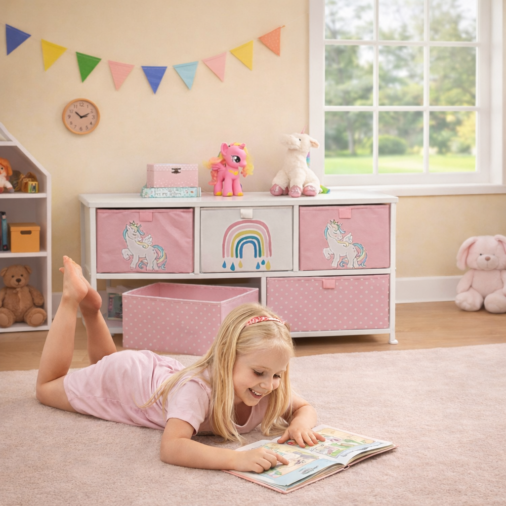 - Drawers are supplied in 3 complementing designs – unicorn, rainbow, and polka dots